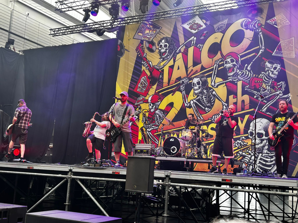 Desde Italia llegaban Talco para poner la nota festiva y acelerada a la sesión matinal. Con su habitual mezcla de ska, punk y ritmos folk, la banda convirtió la pista en un hervidero de bailes y “pogos” tempraneros. Su sección de vientos rugió con una precisión envidiable, y temas como La Torre o Danza dell’Autunno Rosa consiguieron elevar la temperatura del pabellón varios grados. Fue el chute de adrenalina necesario antes del breve descanso para reponer fuerzas en la zona de las Harley-Davidson.